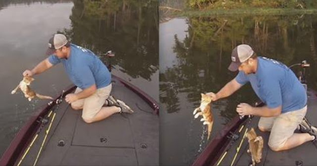 Nice of these guys to get the cats - but seriously, do you think they could have moved the boat over to where the kittens were instead of making them swim. These poor little kittens probably haven't eaten for days. I hope they took these babies to a rescue. It would have been nice to see them dry off these little ones. But at least these guys were there for them.