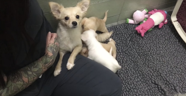 A video of the dog’s reunion with her babies was shared online by the Marin Humane Society this week. The Bay Area group explained that the dog, named Cora, was surrendered by her owner on Saturday. After an examination, it became clear that Cora had recently given birth.